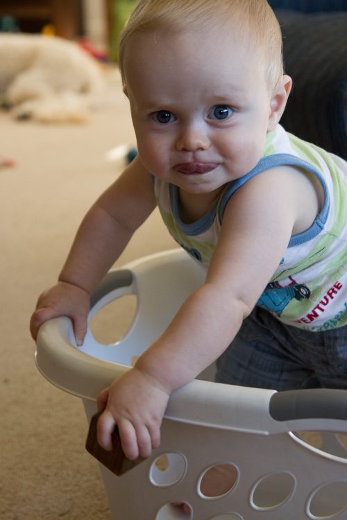 It’s concentration tongue time agin. CJ spent a lot of time in the washing basket, then out of the washing basket and then in it again! Always concentrating very hard on standing, climbing and playing.