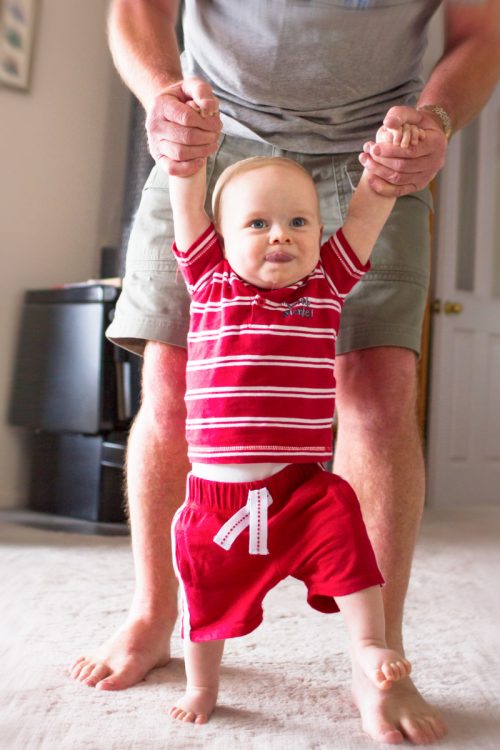 Just 8 months old and very sturdy on his feet. His dad (s2) walked at 10.5 months and I suspect cj will too – if not before. And that will be trouble!!!