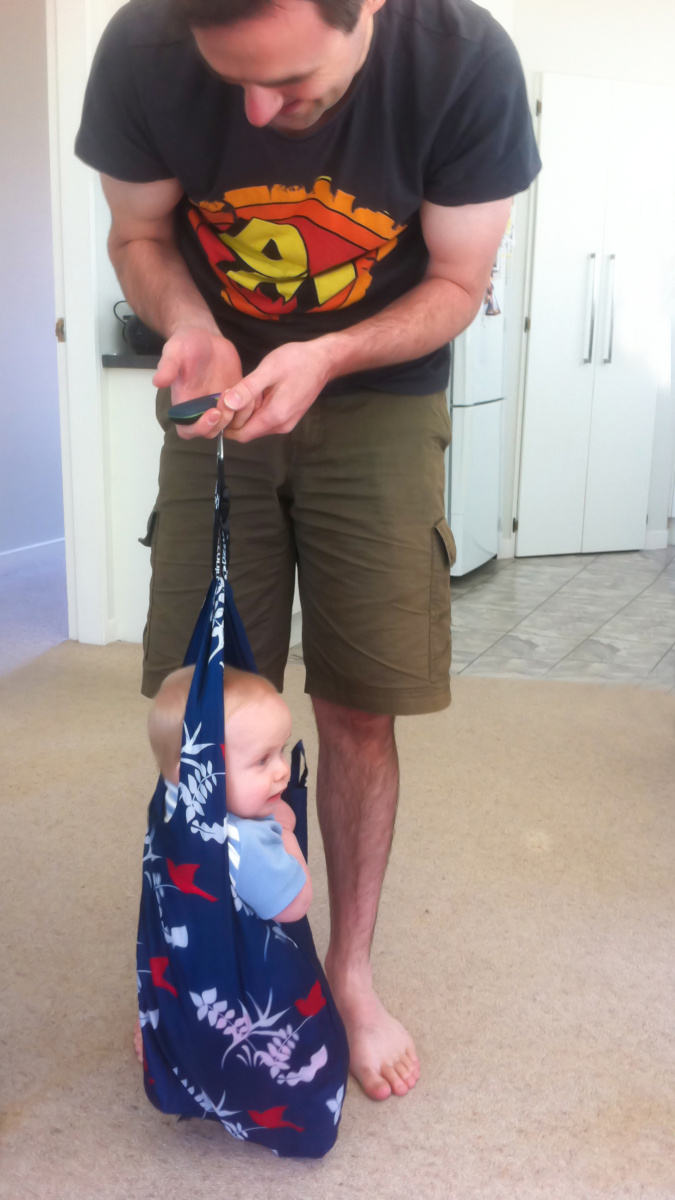 He is 1kg heavier than one month ago – must be the fresh NZ vegetables and clean air over the past 2 weeks 🙂