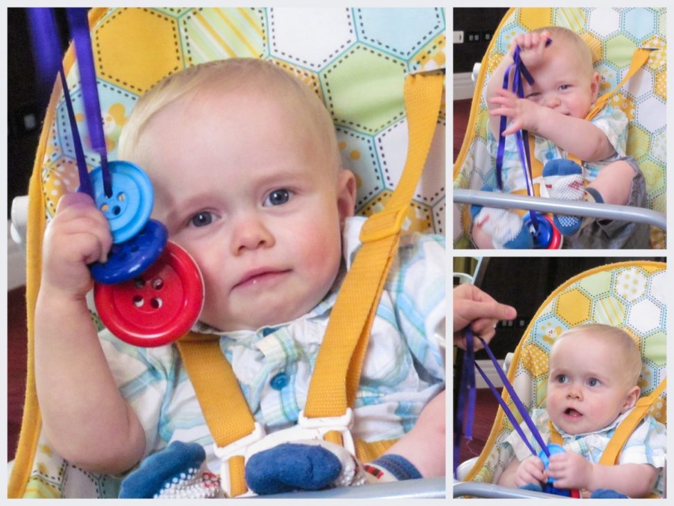 Then we went for lunch where CJ kept himself amused with these big bright buttons.
