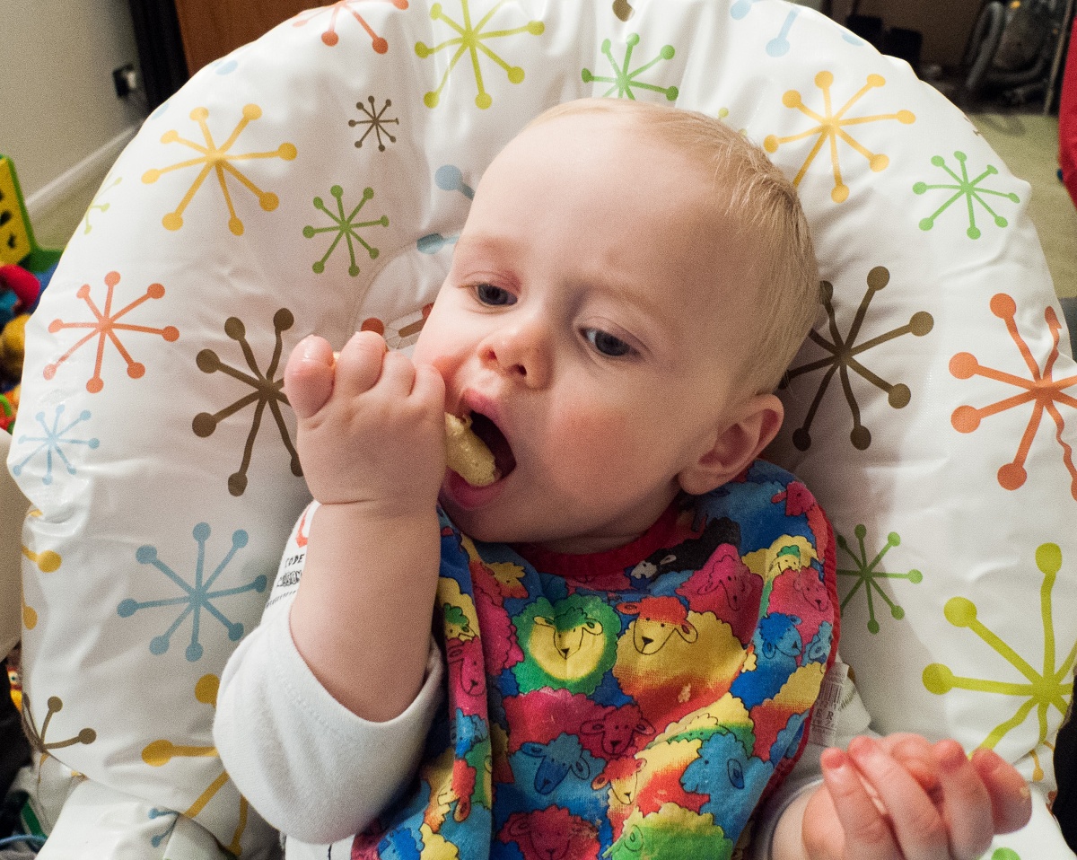Maybe the new highchair is magic – CJ is actually eating his food without too many hassles. He is even enjoying his finger food and managing it by himself!
