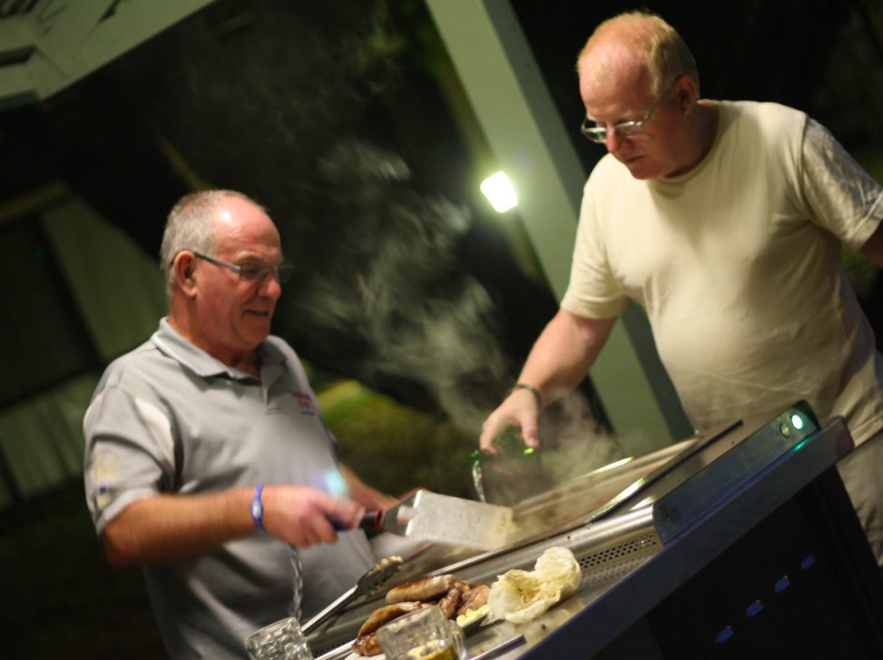 Always good to see guys cooking dinner, and then cleaning up …………… and I’m fairly certain that the contents of that green bottle had been consumed during the cooking, and then filled with water for the clean up