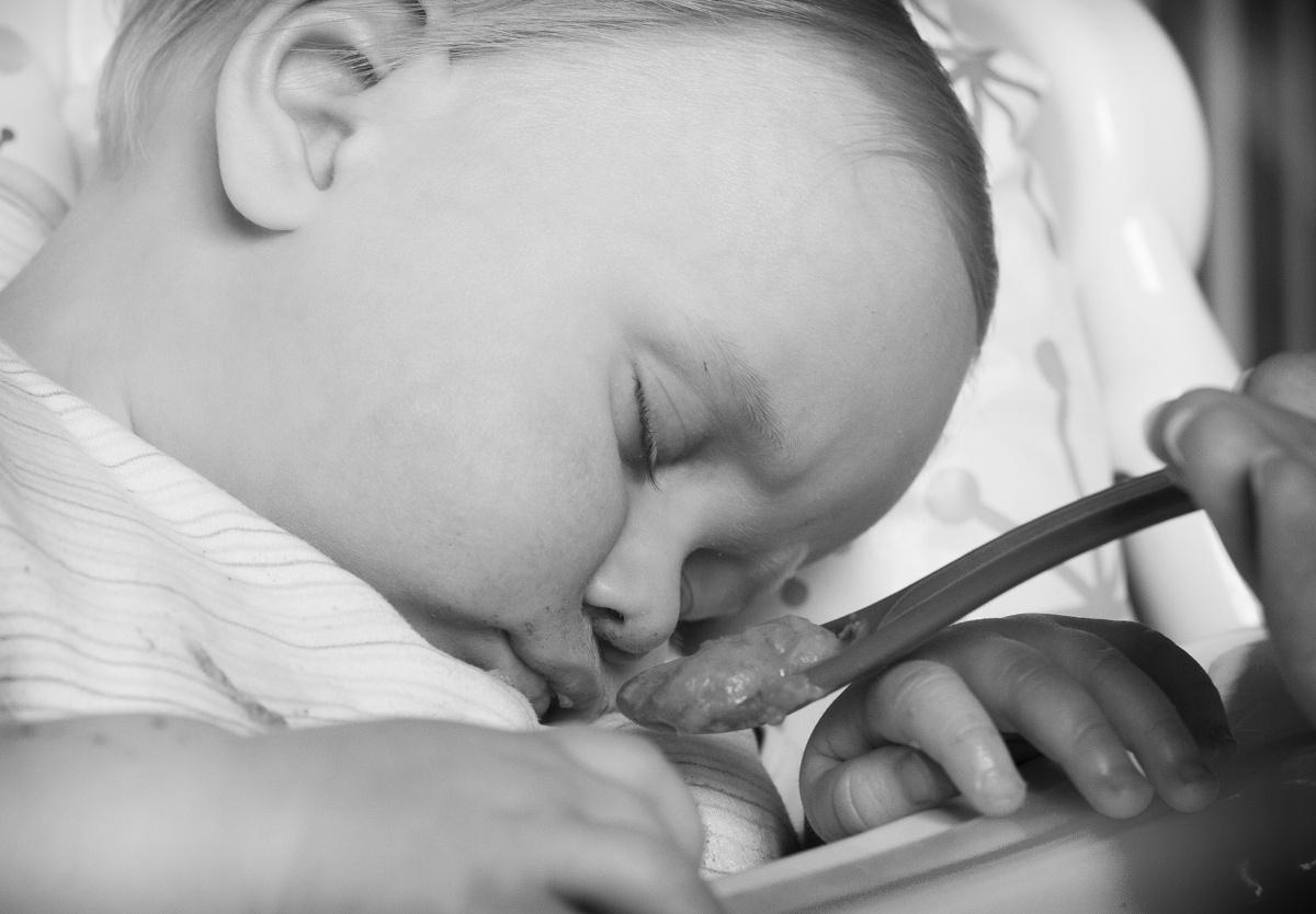 I arrived home to a comical moment from CJ. Hunger lost out to exhaustion.