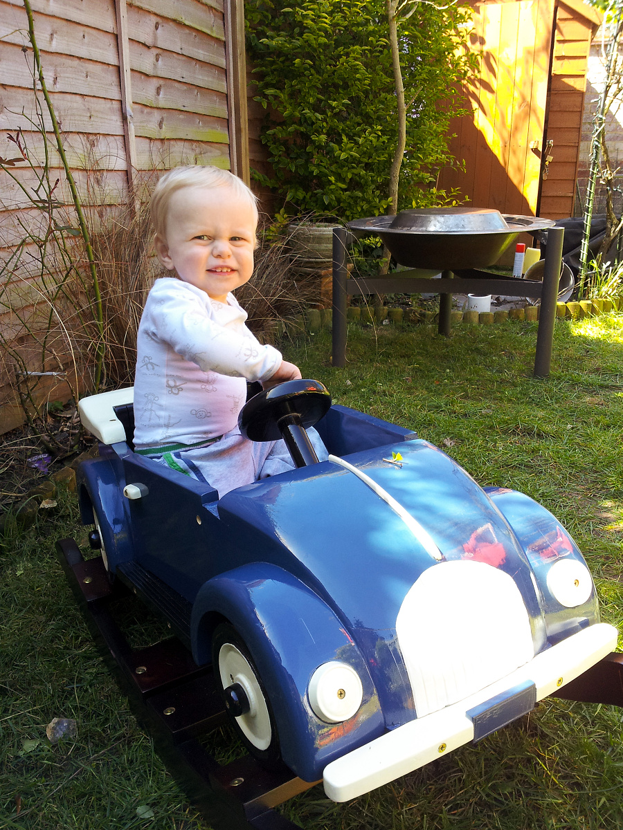 Today was a beautiful day, so we decided to finish cutting the trees in the garden. Since it was so nice, we let CJ stay outside with us – he loved playing with the grass and the leaves, he would chase Pixel up and down the lawn and when he got a little tired he would climb into his car and watch what we were doing!