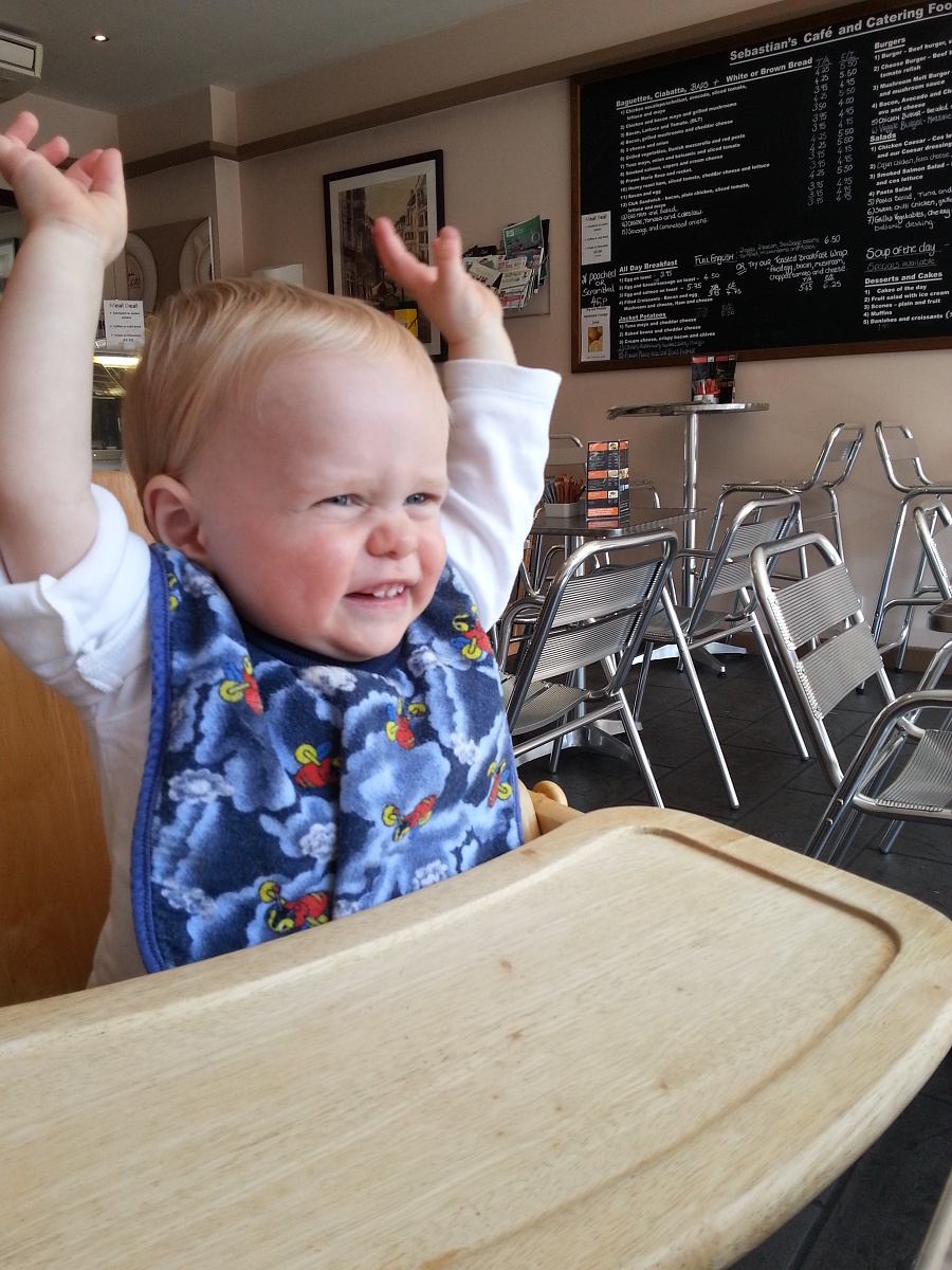 S2 worked from home today, so to keep out of his way CJ and I went for a long walk in the sunshine! We then met up for lunch at our local cafe where CJ tried to entertain everyone with his smile and antics!