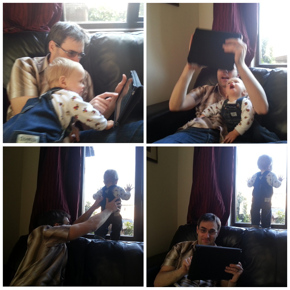 When S2 gets home CJ will do anything to spend some time with him. Tonight S2 was trying to finish something on the iPad and CJ decided to “help” and wouldn’t take no for an answer. It was very comical to watch as S2 struggled to control this very determined force. However, it wasn’t long before S2 played the trump card – what’s out the window ?