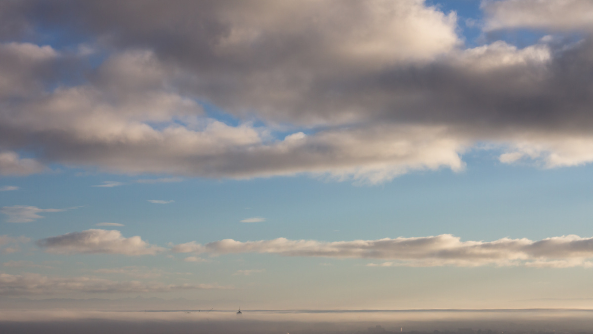 Glorious morning at our house, but fog smothered the city until early afternoon. This caused major disruptions to flights, and driving must have been a challenge.