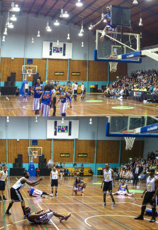 Today we went to Cowles Stadium to watch the Harlem Globetrotters – very clever ball skills …………. but definitely not a regulation game of basketball!!