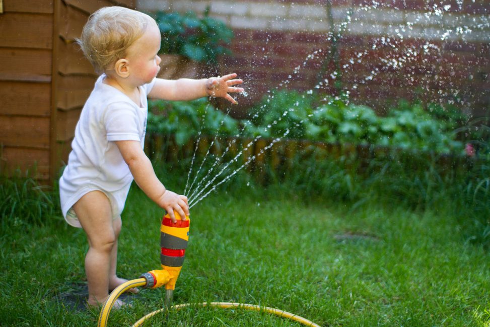CJ loves nothing more than playing in the sprinkler. We put it on for him after dinner to help wear him out before bed. It takes him seconds to realise it is on and charge off for it.