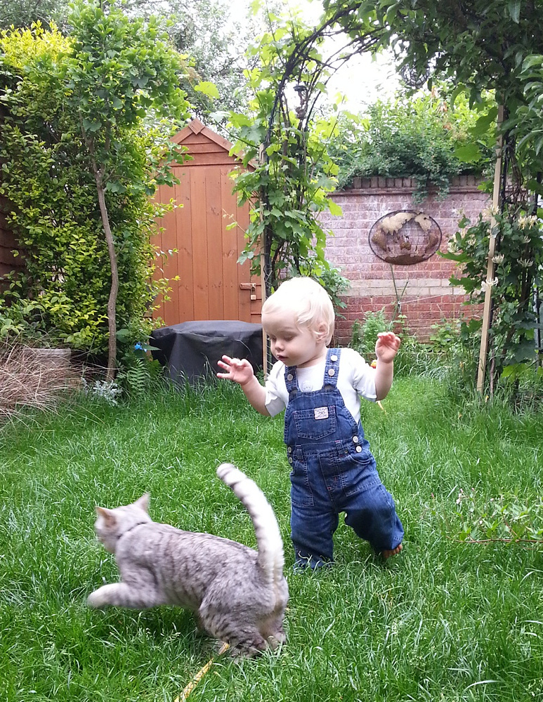 After a lovely morning coffee with E&G and a little bit of shopping we headed home to play in the garden – and what better activity to burn off that extra energy than tiger hunting! Pixel played her part perfectly and would run around the garden with CJ just a few feet behind!