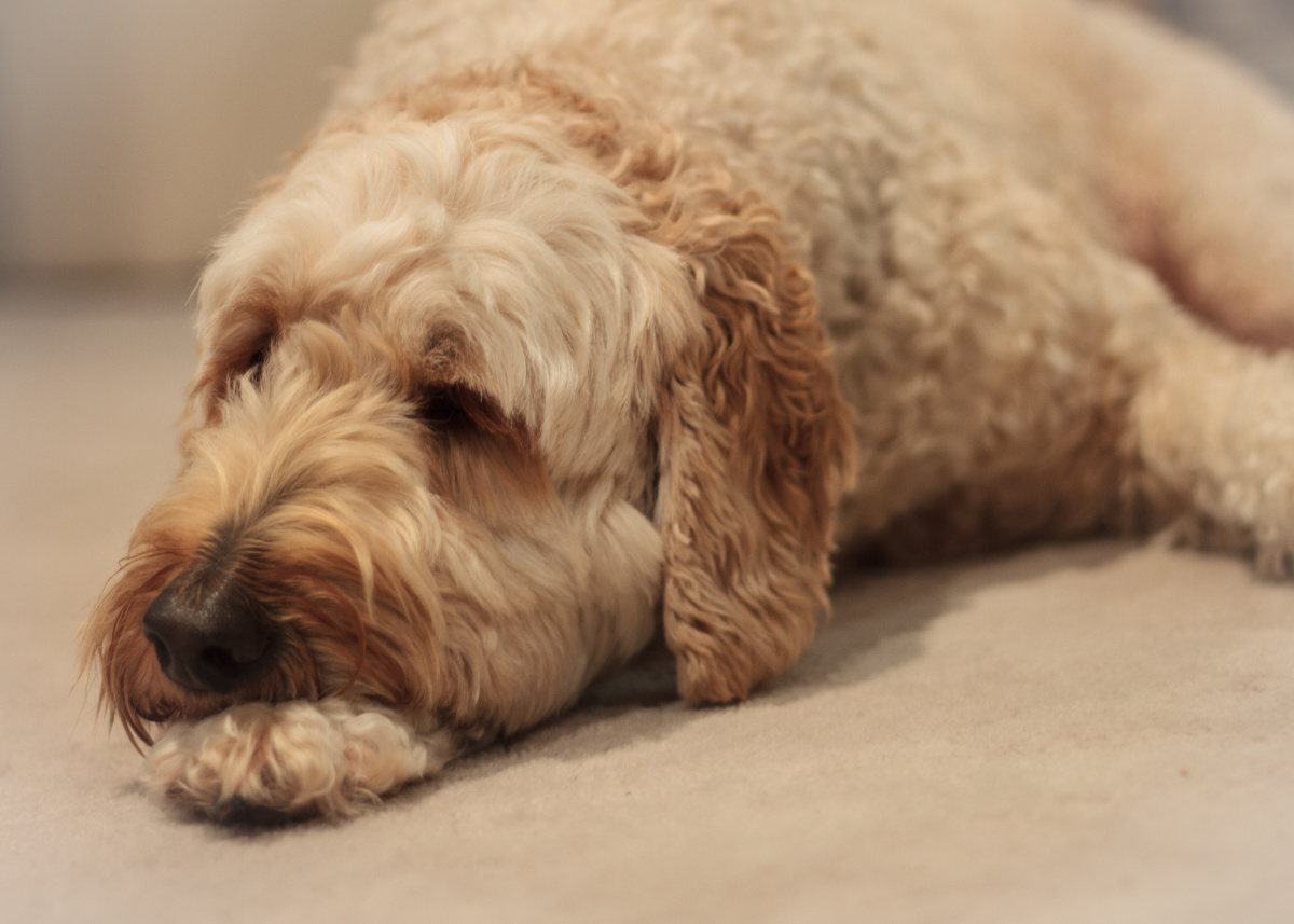 Molly is sick of the rain – even the novelty of lying in front of the fire is wearing thin.