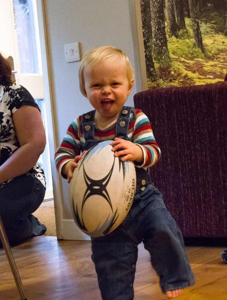 CJ also helped with the unpacking but once he found the rugby ball it didn’t leave his arm – and he loved practising th Haka facial expressions!
