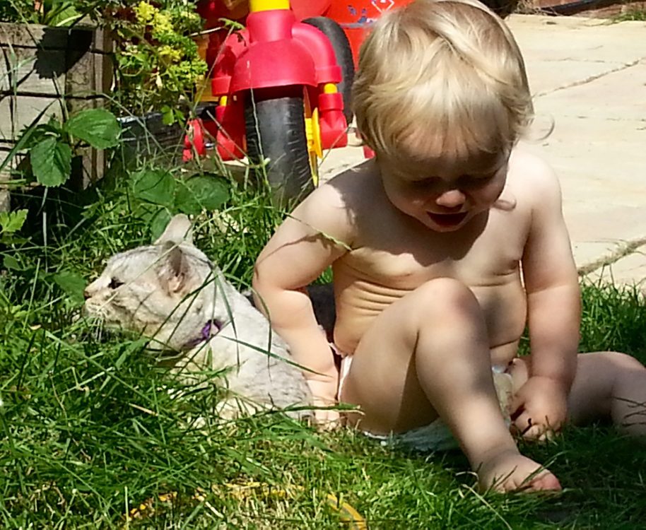 He loves chasing her around the garden and she makes sure he can keep up but they seem to have an unspoken agreement to rest together every few minutes in this heat!