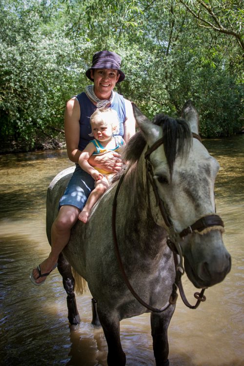 Then the horses came back, and a surprise for the kids – they could have a ride. So J jumped on and held them! CJ had been fascinated by the horses, his eyes not leaving them while they were net the picnic site – but he was a little unsure about riding one…