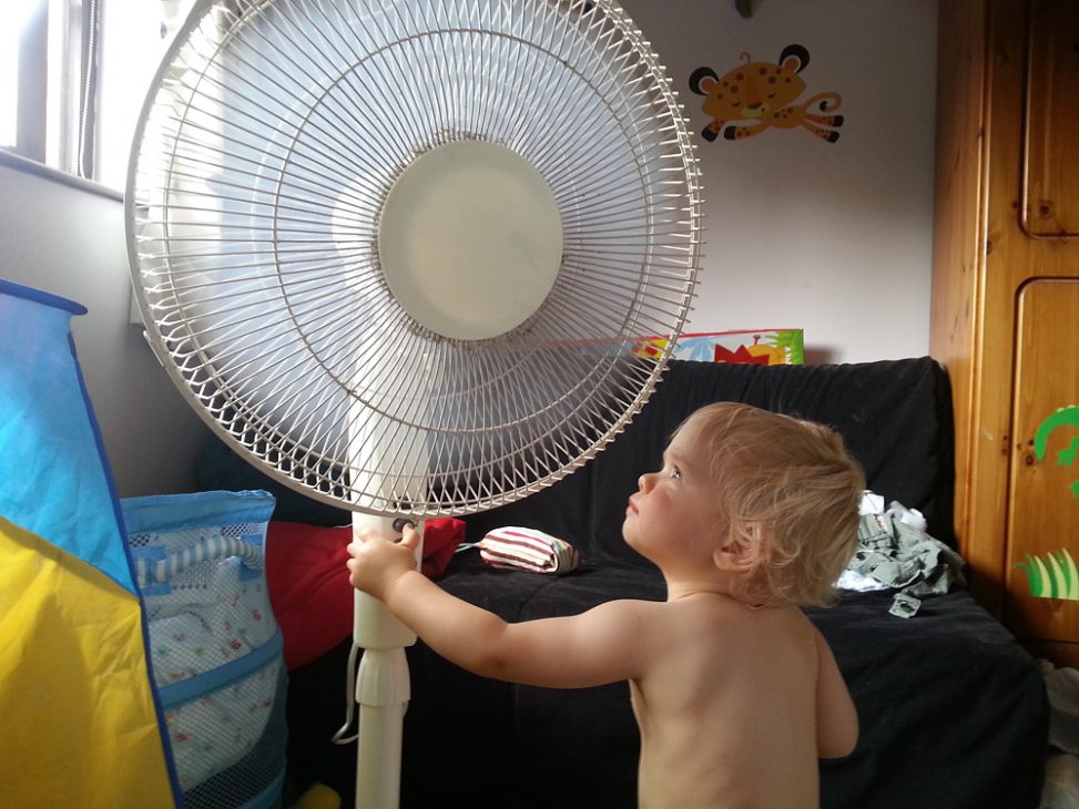 The buttons on the fan are very exciting. They cause the wind to blow! He will spend ages pressing the speed buttons and the on/off button.
