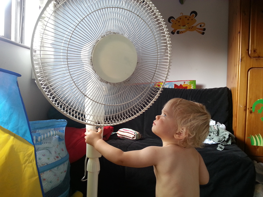 The buttons on the fan are very exciting. They cause the wind to blow! He will spend ages pressing the speed buttons and the on/off button.