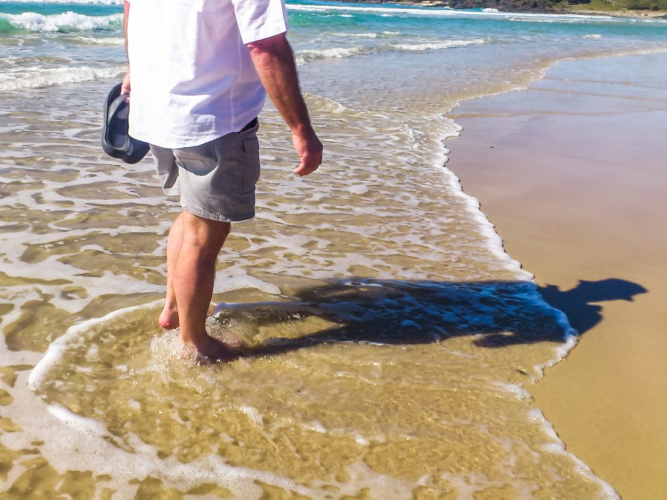 Walked along the beach, up the rocky bluff, watched whales out to sea – some close in and some toward the horizon, but there was plenty of activity to watch – then on to coffee at the surf club.