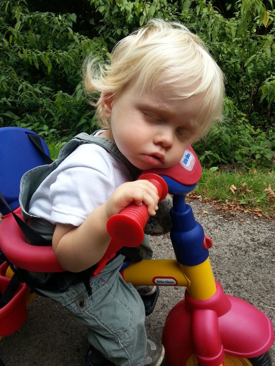 Unfortunately the trike is not as comfy to sleep in as his buggy, so it was only a short nap.
