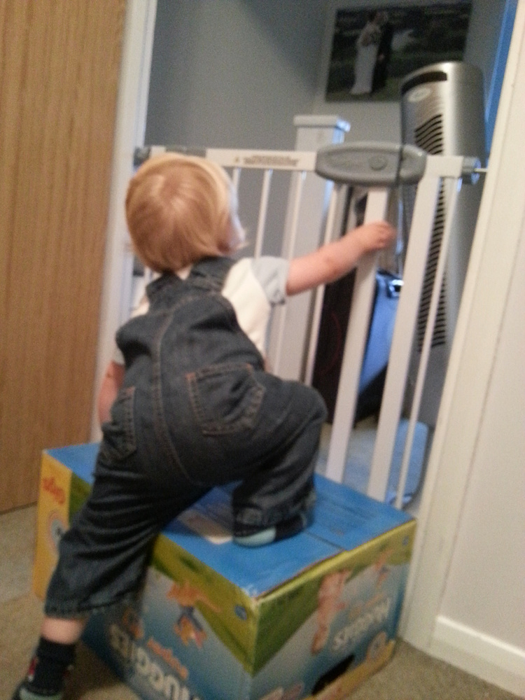 This was one of his more clever attempts – after working out swing on the gate did nothing!