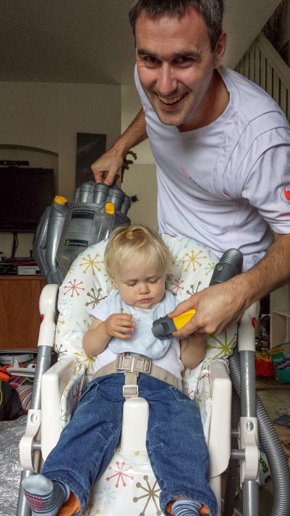 It was such a mess, we had to resort to getting the vacuum out to clean him off before we got him out of the chair.