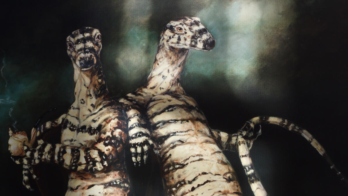Another Outer Spaces art work – a painting of lace monitors in human poses by Joanna Braithwaite. A bit disconcerting really.