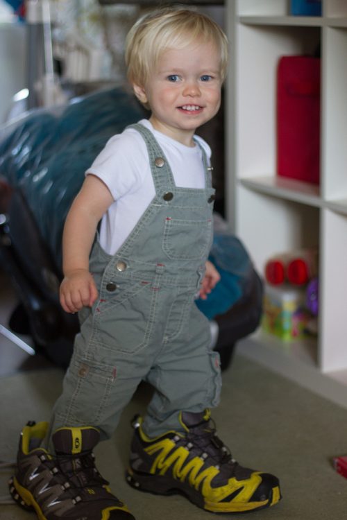 So they may be a little big at the moment, but CJ was determined that he was going to wear S2’s shoes! He even climbed into the, himself.