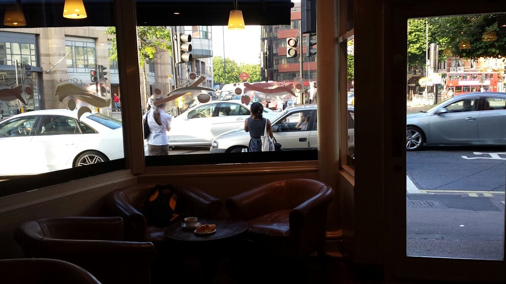 Up at 6, on the train for 7, Hammersmith for 8… Coffee and a chance to get my work done before 9.
