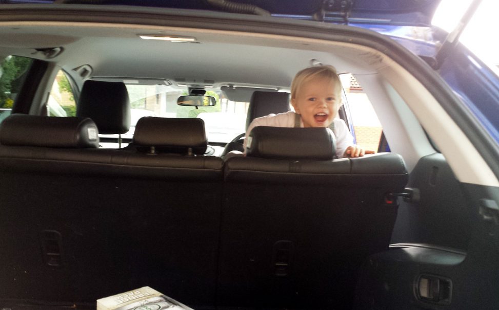 CJ must investigate everything – including unloading the shopping from the boot. Luckily he hasn’t figured out he can climb into the boot from his car seat – but I don’t think it will be long!