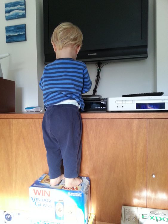 CJ loves opening and closing cupboards – usually it’s more the act of opening and closing the door rather than finding out what’s inside. However at the moment the cupboard is full of interesting non-CJ toys that he wants to inspect.