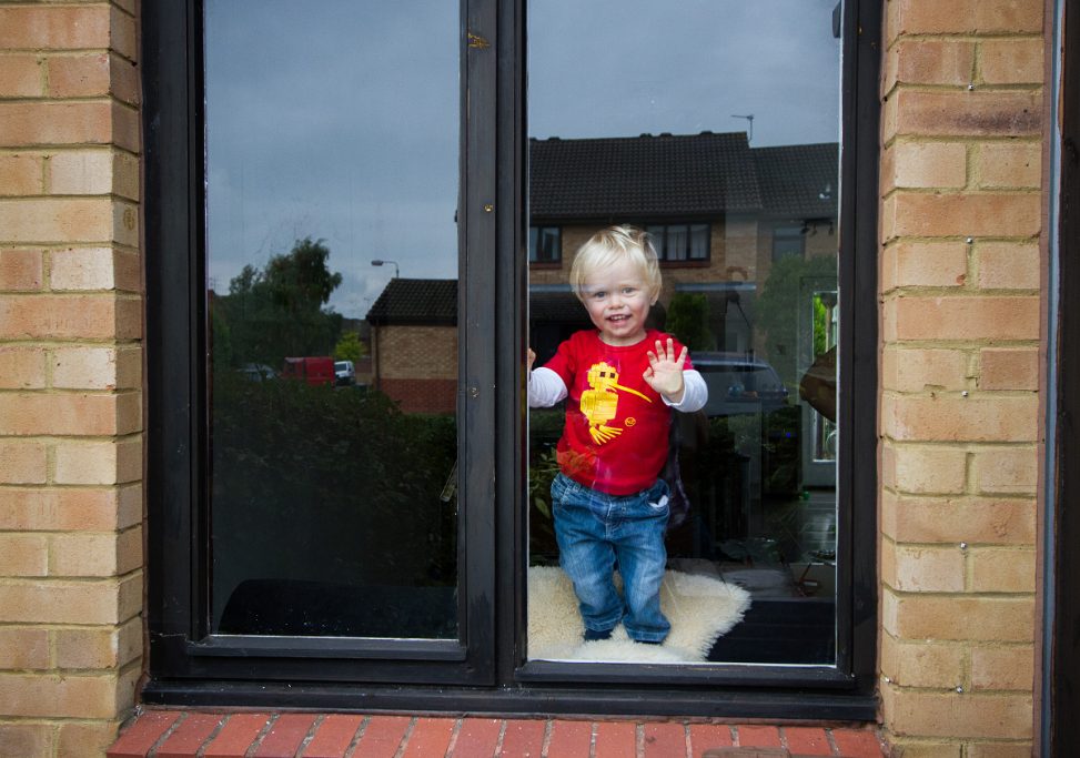 I play peakaboo with him behind the hedge, until he gets bored and climbs down to run to the door to wait for me.