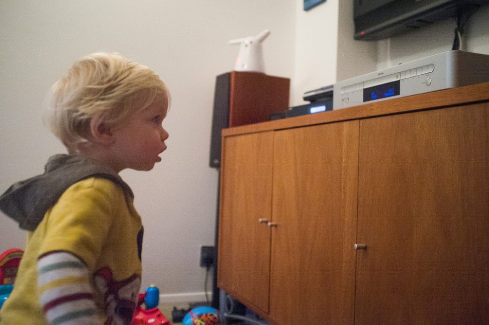 We will often turn on the stereo and as some sound comes out he stops what he is doing and stares in wonderment at it. Then it’s not long before his feet start moving up and down and he turns around in circles – his form of dancing.