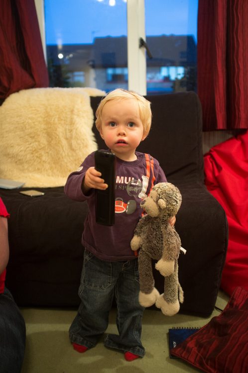After waving it around a bit he brought it to me and pointed at the TV.