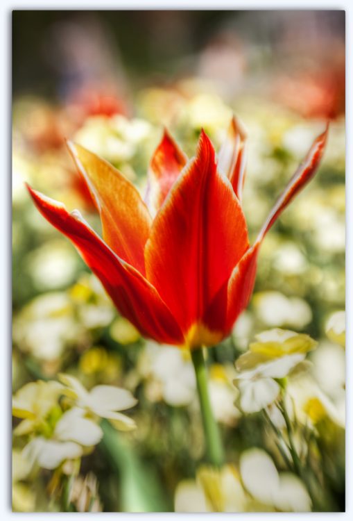 One of photography things we discussed was lensbabies, so after we parted company I took a quick lensbaby shot of the tulips in the gardens.