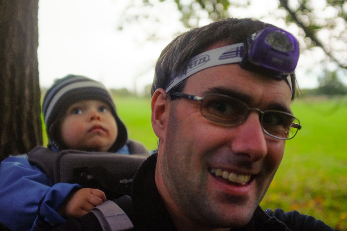 Sprinting up hill in the rain. A wriggly 13kg on my back. A dash. 2/3km as fast as we could go.