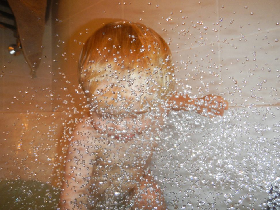 Once CJ got his hands on the shower head all bets were off and there was water everywhere.