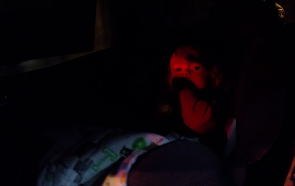 CJ has a habit of waking up when we drive home from somewhere and just staring out the window at the lights the whole way home.