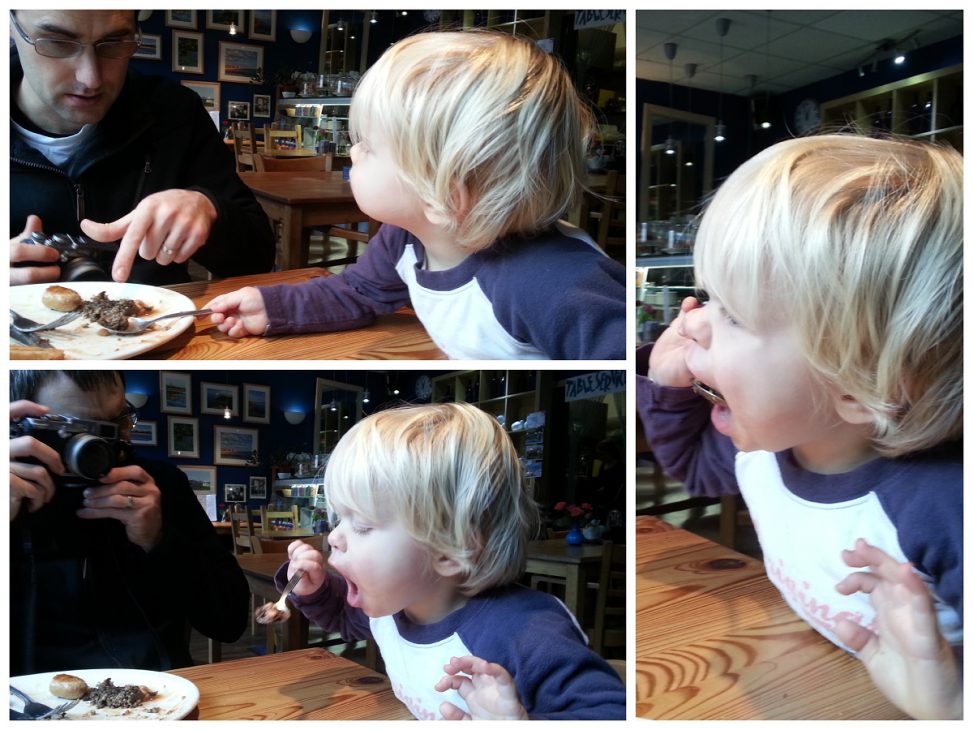We ended up in a lovely cafe, were we order a big breakfast each and something for CJ, however when it arrived CJ was only interested in the food that was on S2’s plate – so of course he ended up trying some Haggis – which he loved – our little Scottish boy!
