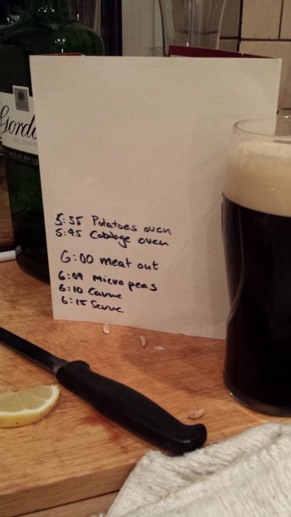 I walked into the kitchen at one stage and this made me chuckle. The times were OCD exact, and it worked a treat because the dinner was lovely.