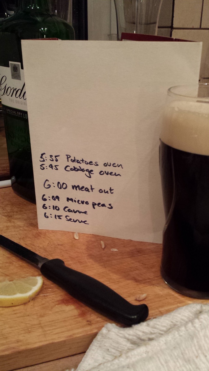 I walked into the kitchen at one stage and this made me chuckle. The times were OCD exact, and it worked a treat because the dinner was lovely.