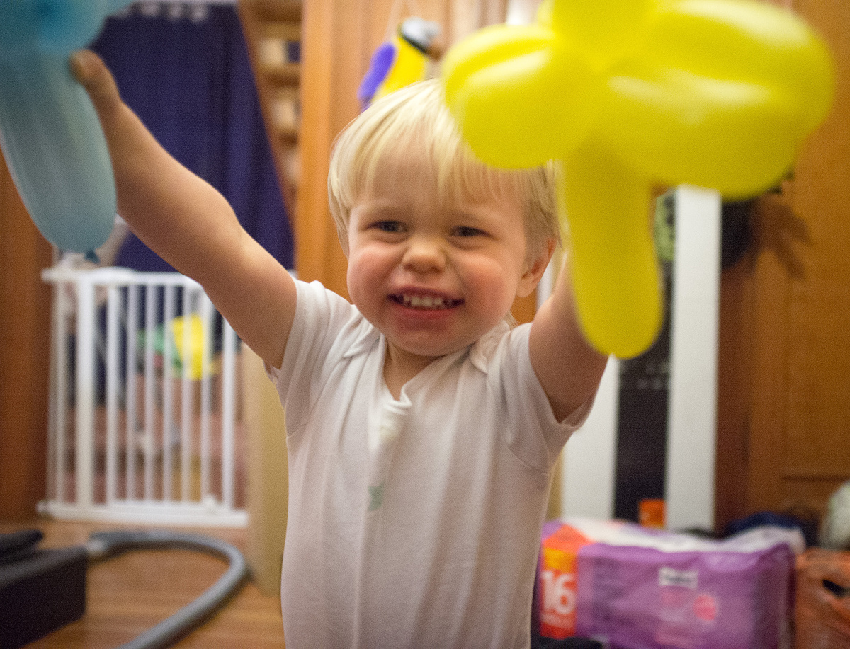 Once home S2 decided to have craft time with CJ and they made ballon swords – well I think S2 made them and CJ assisted. For the next 20 mins all you could hear in the house was a ninja war cry giggle from CJ as he charged around with his swords, “attacking” S2, Pixel and me.