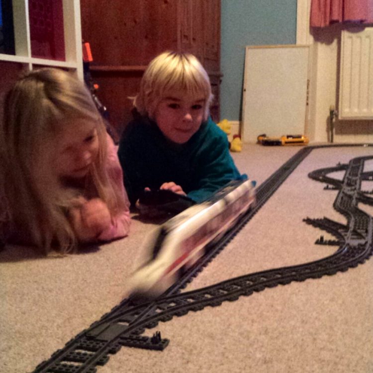 Despite the recent popularity of Tablets and Xbox, R (and for a while I too) was amused for hours today by building trains, stations, crossings, and driving around.