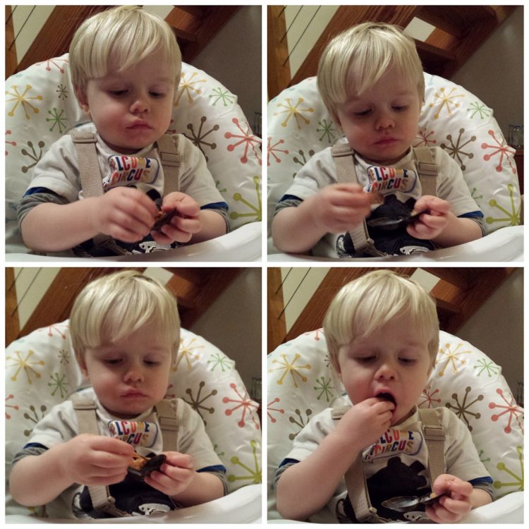 Tonight we decided to give him a starter of few mussels to see what he would do, expecting them to end up on the floor. To our shock and surprise he picked one up, opened it, pulled out the mussel and ate it without hesitation. Then in a matter of seconds he was repeating the process with the next one, and the next, until the bowl was empty. Well it was empty until he placed all the empty shells back in, as if to say “more please”.