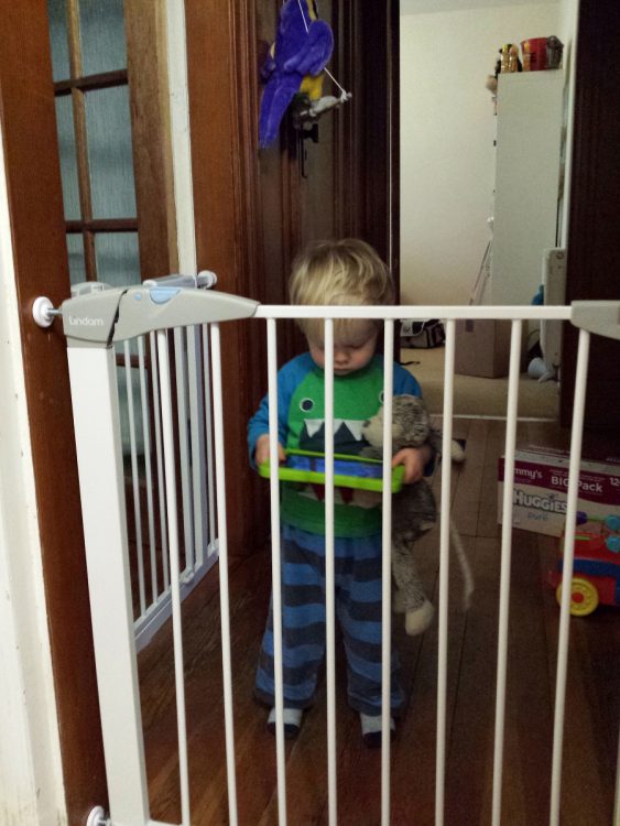 While I am busy getting everything ready he doesn’t run off to play but will stand by the gate, patiently waiting for me to open the gate to the dining room and his highchair.