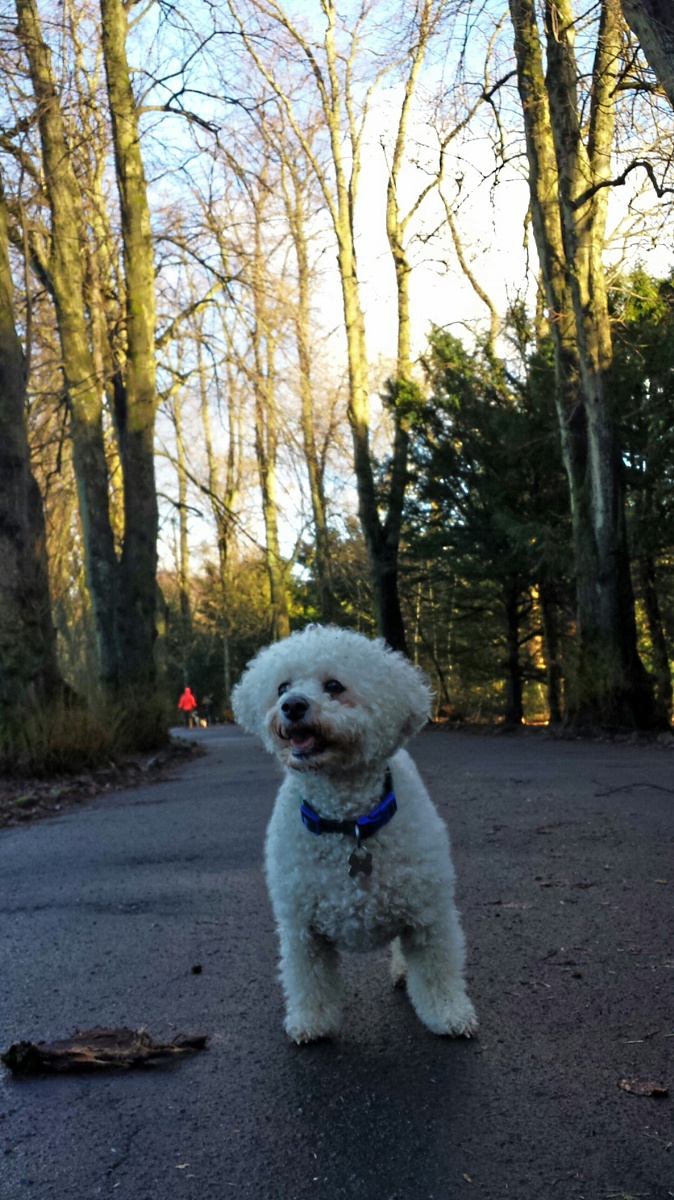 Although he doesn't need a lot of exercise, (and can't do much more than 2 miles on a run), he loves his walks and socialising in the park.