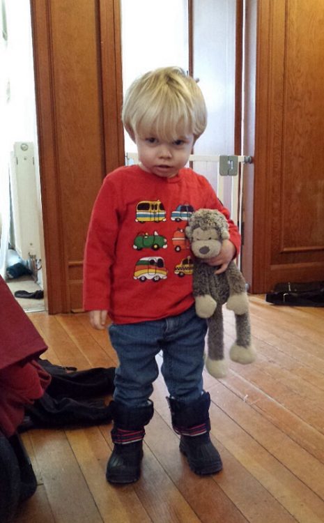 He had managed to put his boots on all by himself, including the Velcro straps.