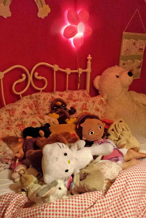 After we call night time, we hear her talking away to her toys (who all have names!). We know that once she is quiet and sleeping, we will need to go up and uncover her before we go to bed ourselves.