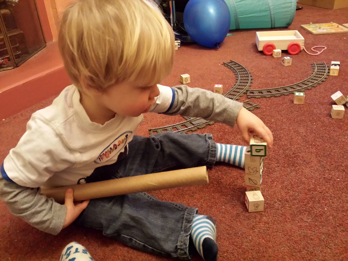 CJ’s new game today is “build and destroy”. He would spend ages building up towers and would then use his bat to knock them down again. We had blocks everywhere has his tower building skills improved, the blocks went further!