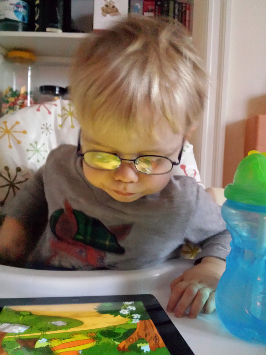 He has been brilliant wearing them today – not taking them off until early evening. I think they are really helping him. He is spending a lot of time looking at things as if he’s never seen them before!