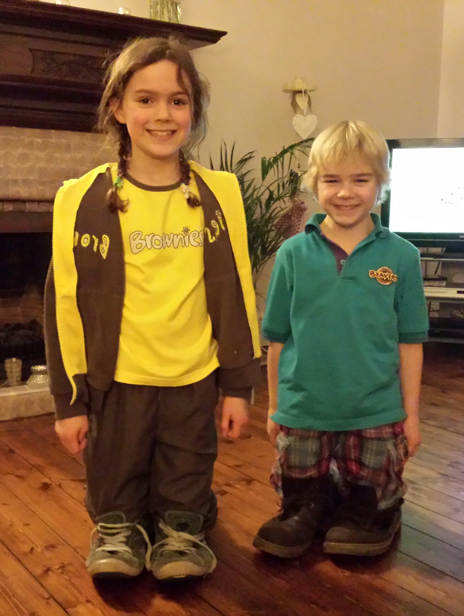 These two were walking around last night making big stompy noises with the dad's shoes on.