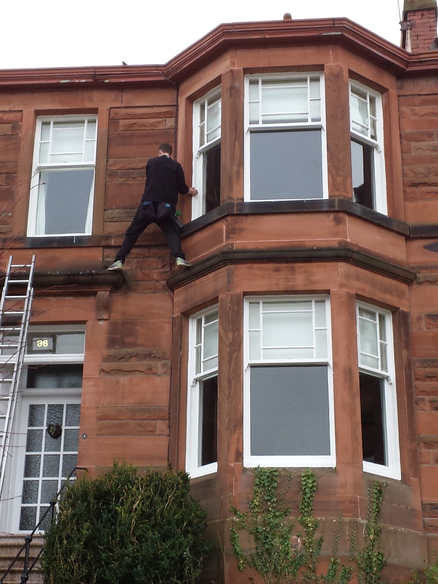 Then we met a couple of local guys who actually clean the windows. Ladders, soapy water, squeegees, cloths, and obviously no fear of heights. Even better… It's only £10 for the front and back windows 🙂